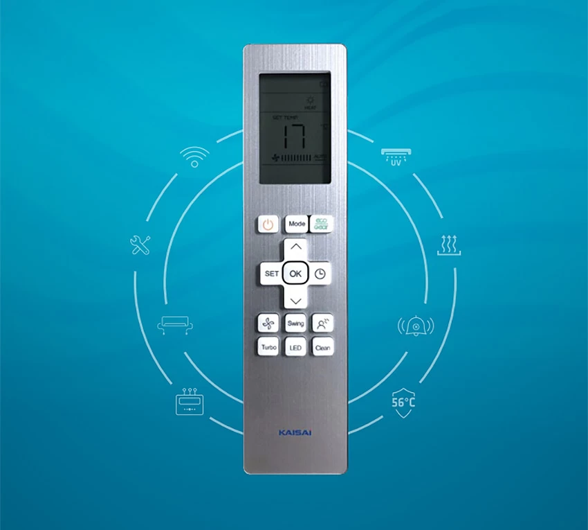 Tryby ECO i GEAR umożliwiają optymalizację zużycia energii w zależności od sytuacji — od maksymalnej wydajności po maksymalną oszczędność. Nawiew 3D z pamięcią ustawień żaluzji i płynna regulacja wentylatora zapewniają precyzyjną kontrolę nad dystrybucją powietrza. Wbudowany Wi-Fi pozwala na zdalne sterowanie z aplikacji mobilnej, a timer programowalny automatyzuje harmonogram pracy.